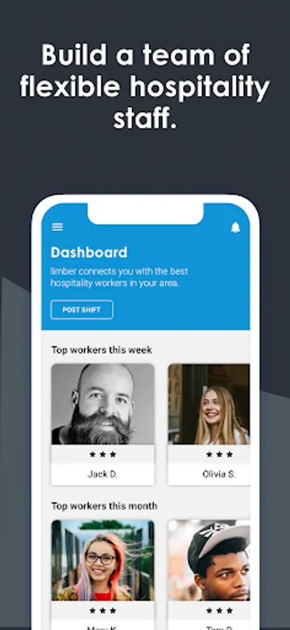 limber connects you with the best hospitality workers in your area. The app allows you to browse CVs with a difference – all containing ratings from other local businesses. On limber, you can cover shifts, staff events or find your next permanent hire.