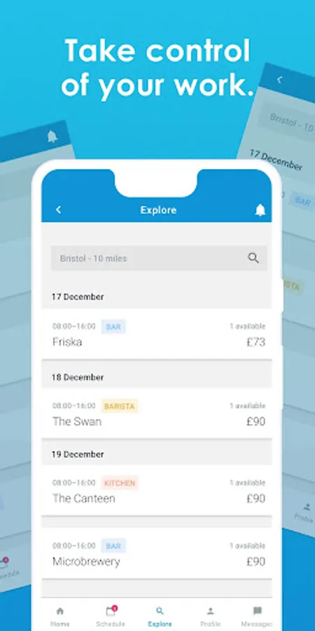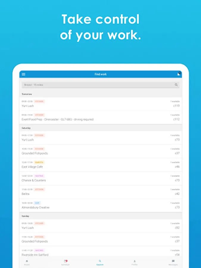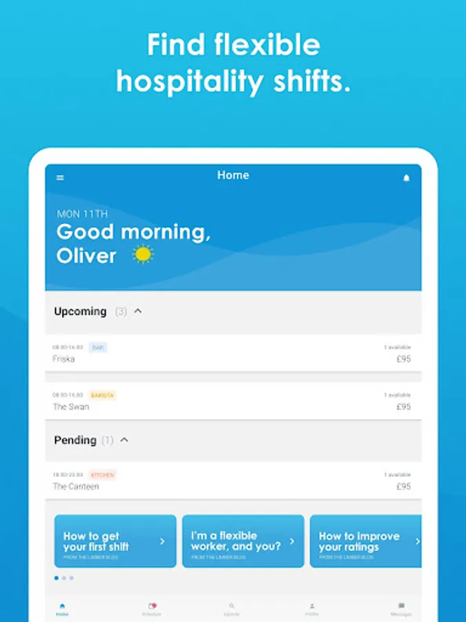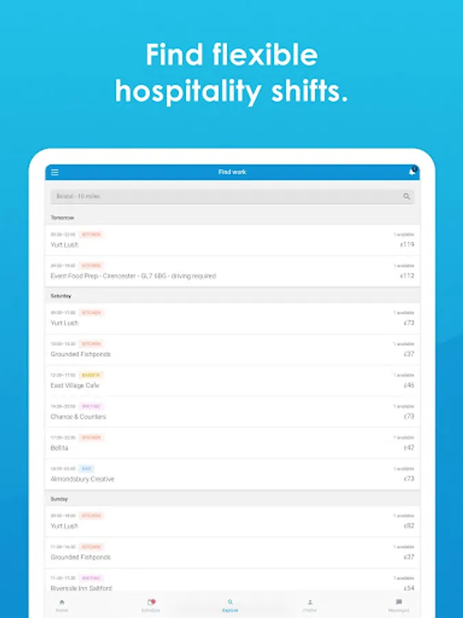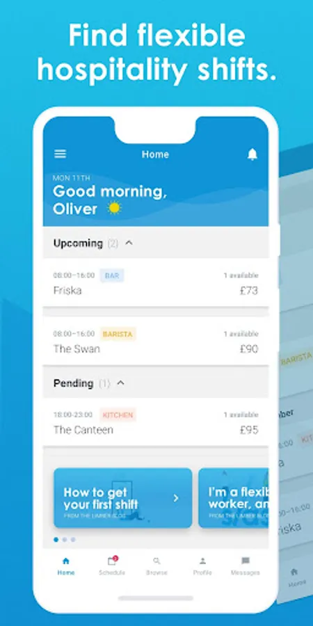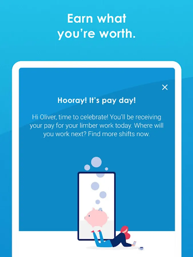 Signing up is easy and in moments, you can be browsing through hundreds of shifts in your area. You get paid weekly and after each shift you get a rating. The better your ratings, the more work you can pick up!