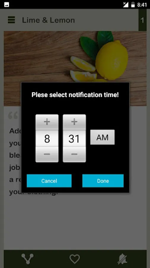 Download Lime & Lemon Daily, a beautiful designed, sleek simple app which brings you daily benefits of Lime & Lemon. Set your time, and receive notification at desired time of the day.
