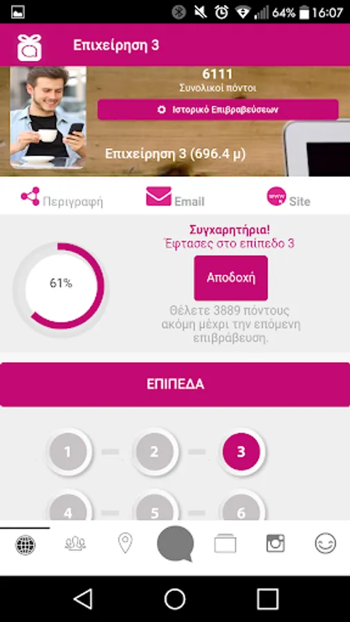 The application detects your visit to a firm Scoop via Bluetooth smart sensors. So by post, by uploading a photo or video and even making comment, share, like friends to posts you earn points stored in your profile for the particular shop where you are.