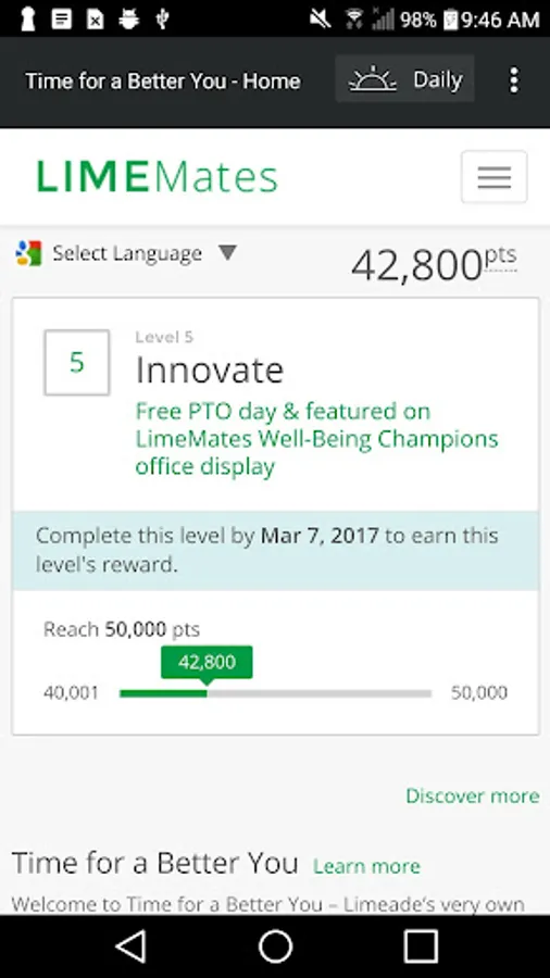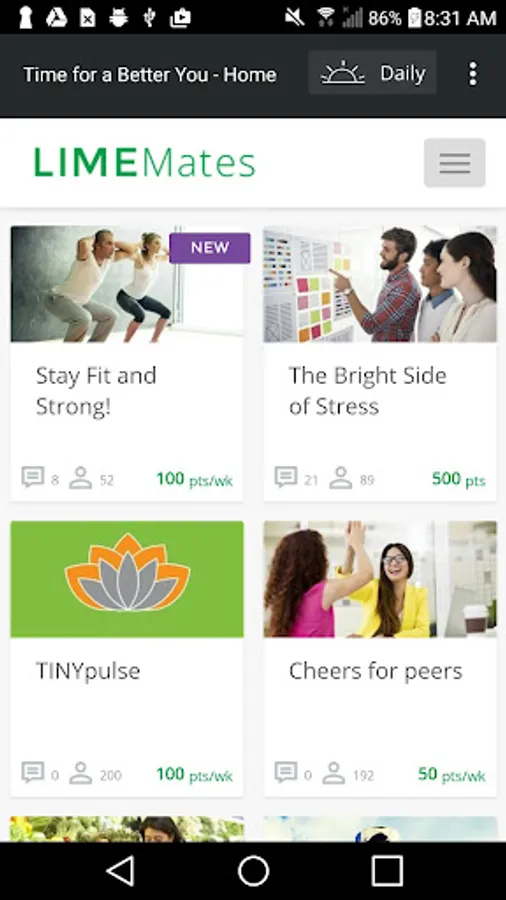 Download the Limeade app to check in on your company’s well-being, engagement or inclusion program wherever you are! You’ll need your organization’s program code to get started.