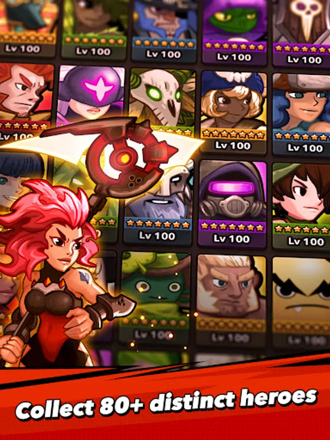Collect over seventy heroes from five unique elements! Gain experience and rewards while AFK!
