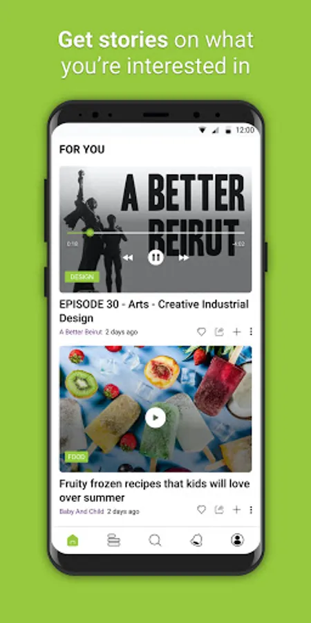 • Customize your home feed: collate up to 15 unique interests through which you are able to source your own stories, giving you access to a range of topics you love.