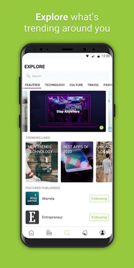 • Create your own Lines: piece together lines by collecting stories and publishers to get access to your personalized news.