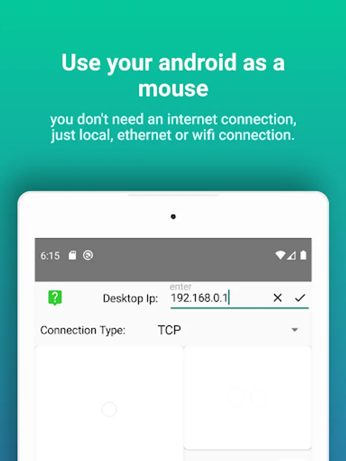 Visit our website, download the server file, run on your pc or laptop, in notifications it will appear that your pc has assigned IP, the IP assigned to your pc you place in the Wifi Mouse Fast application, you select which type of connection you prefer udp or tcp and you're done.