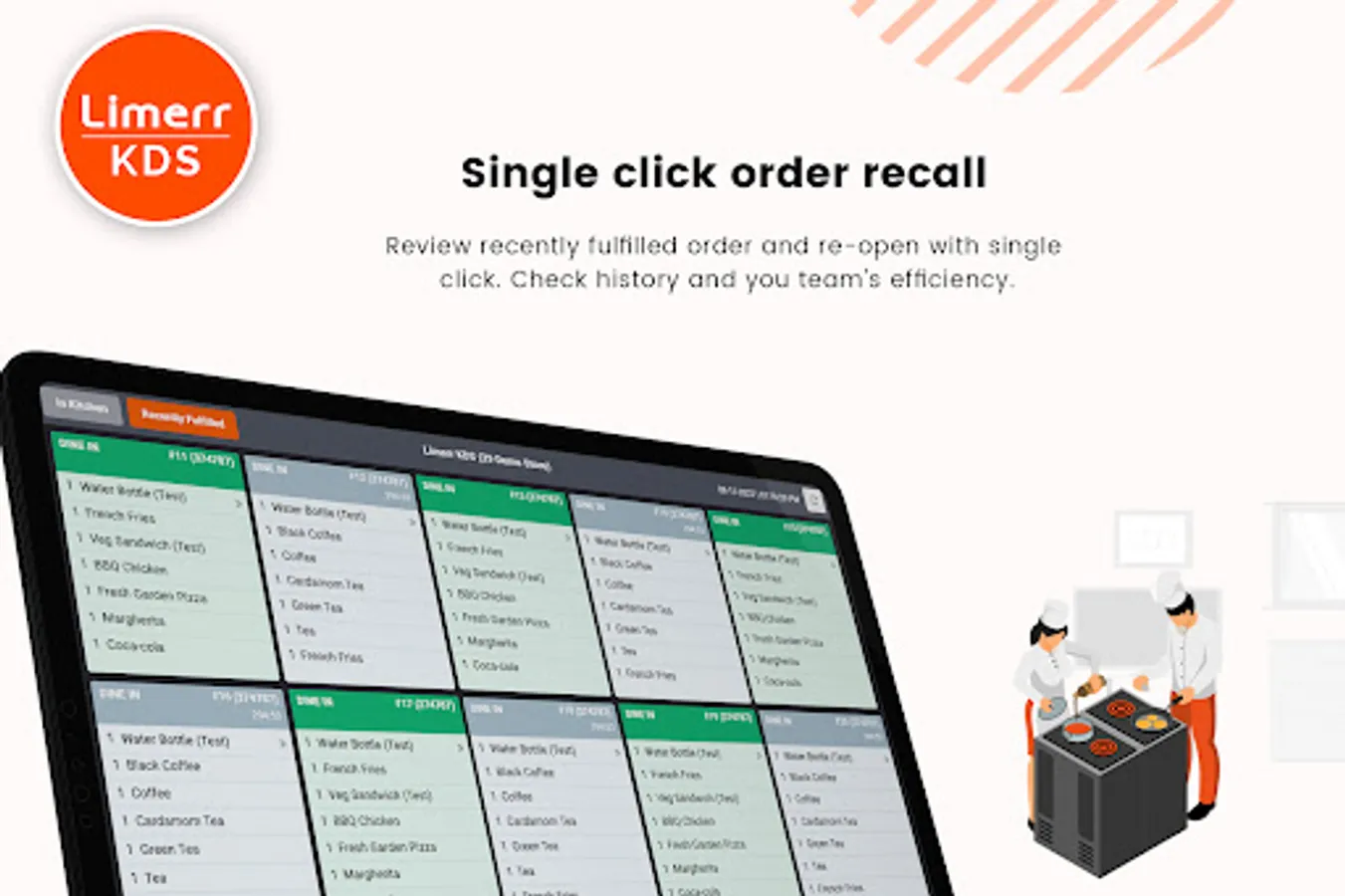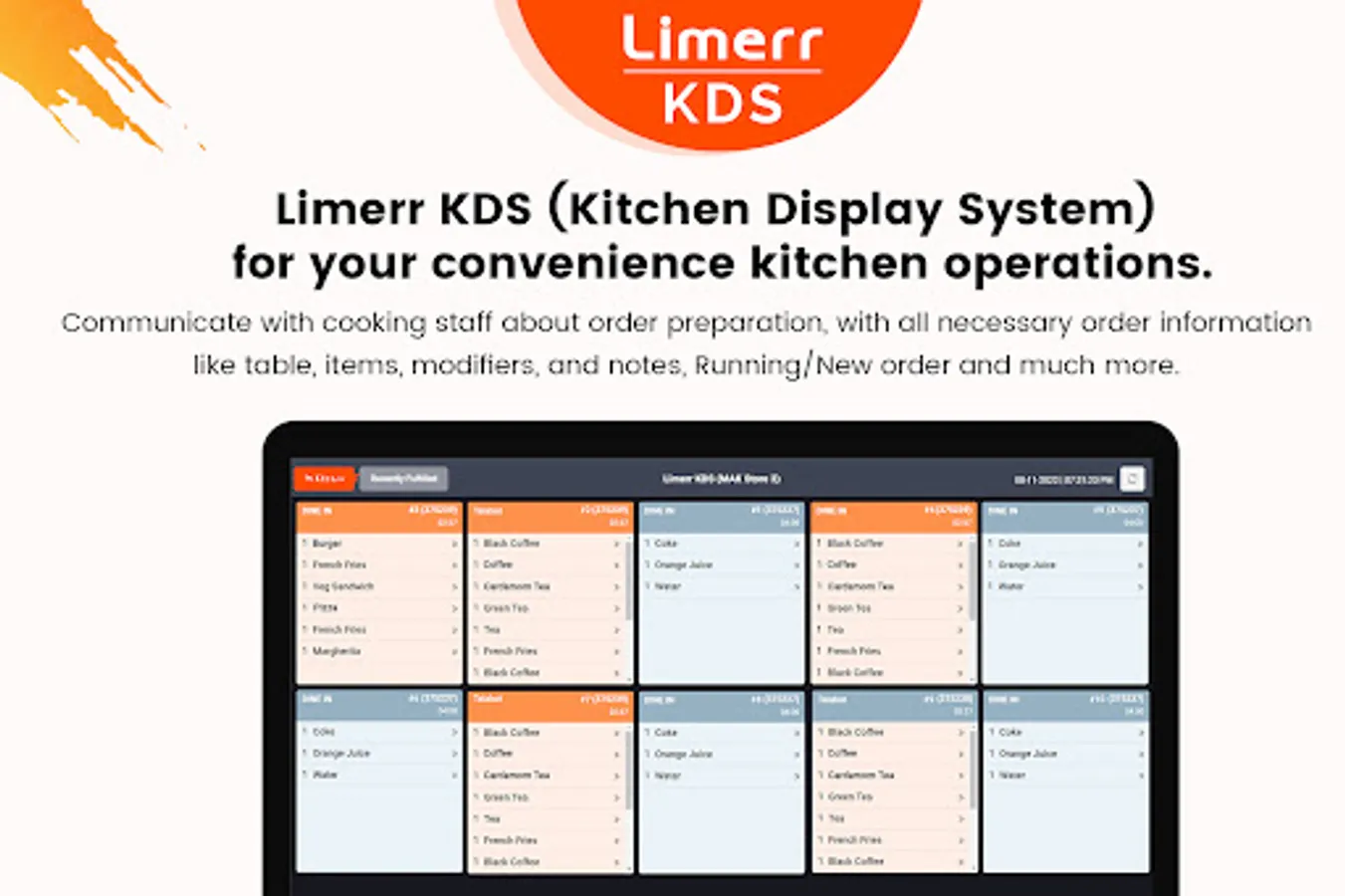 Presenting Limerr KDS (Kitchen Display System) for your convenience kitchen operations. Limerr KDS will communicate with cooking staff about order preparation, which displays all necessary order information like table, items, modifiers, notes, Running/New orders, and much more. Limerr KDS can Improve ticket times and accuracy.