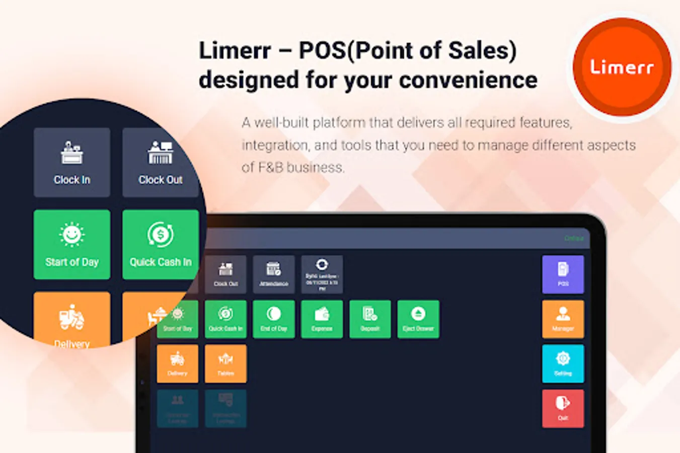 Limerr presents a powerful, customized POS solution for all F&B business needs. Our POS is designed to operate individually and franchise-based businesses that include but are not limited to full-service restaurants, QSR, Bars and Clubs, Pizzeria, Bakery, Food Trucks, Fine Dining, Hotels & Resorts, and Coffee shops.