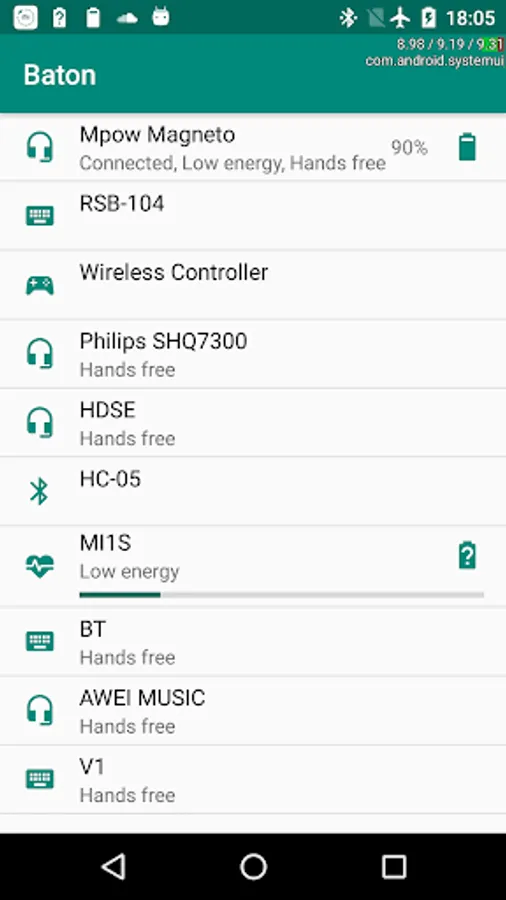 This app _tries_ to show battery level of the bluetooth devices. Bluetooth device MUST has Hands-Free profile (accept, reject phone calls) or GATT profile (usually 4.0+ Low Energy devices).