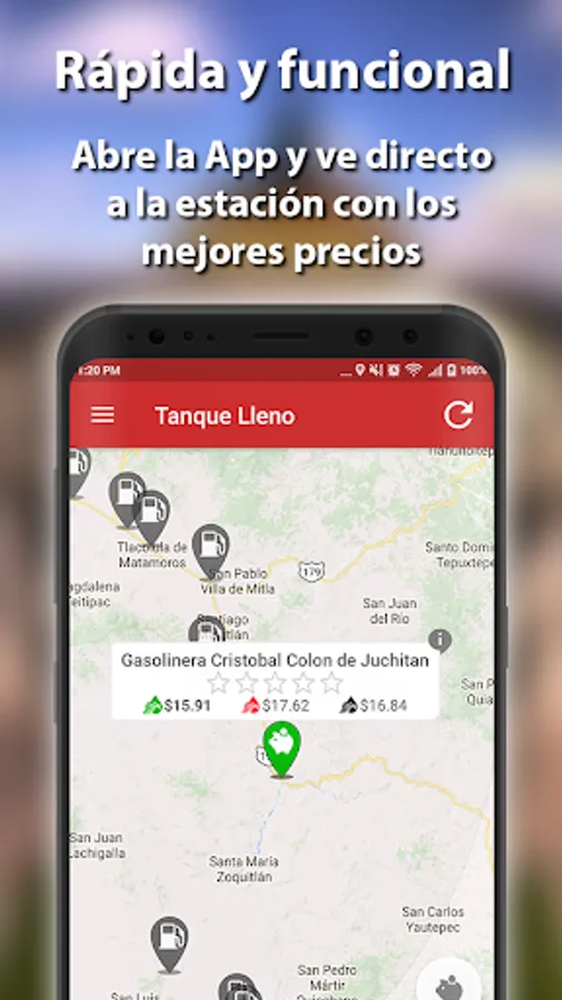 The prices that Gasolina Mexico App shows are based on the reports that the gas stations make to the Energy Regulatory Commission. If the gas stations do not report their prices or do not update them in a timely manner, the App will not show correct prices.