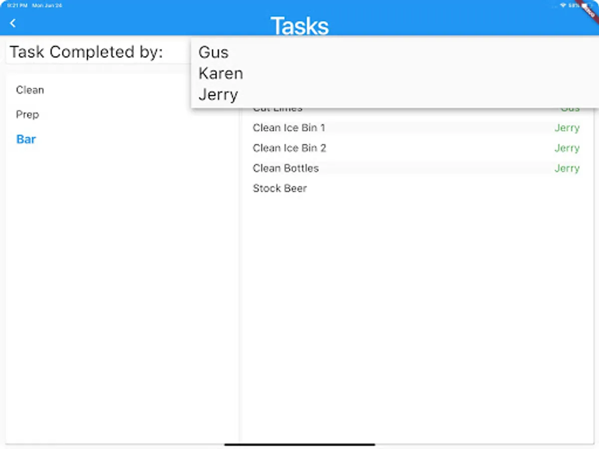 Employees will be able to select their name, then the group and the task to have their name automatically added as the task completer.