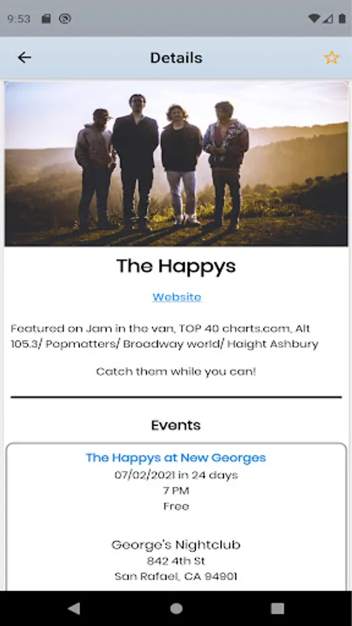 - An events section that highlights your favorites and lists upcoming events in chronological order.