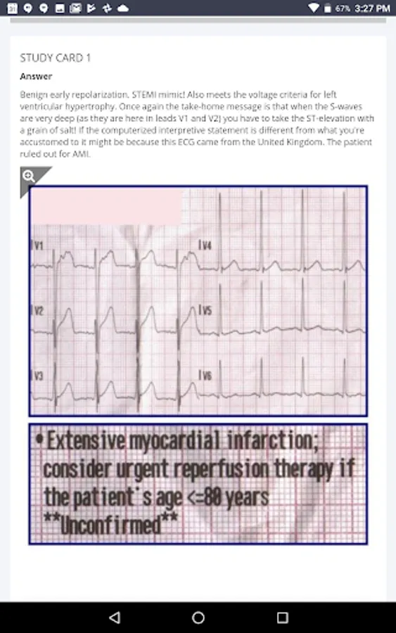 The 12-Lead ECG Challenge app presents a wide variety of cardiac pathologies including a special emphasis on acute STEMI and the STEMI mimics, electrolyte imbalances and others. If you are responsible for cath lab activation, this program is ideal for honing skills and preventing false activation.