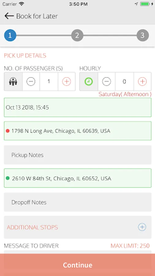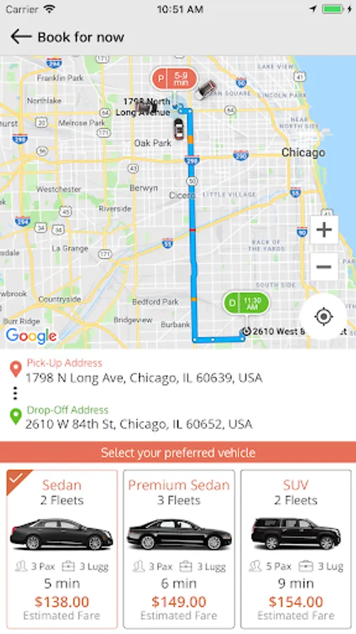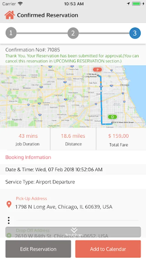 • Journey information includes estimated journey time and drop off time.