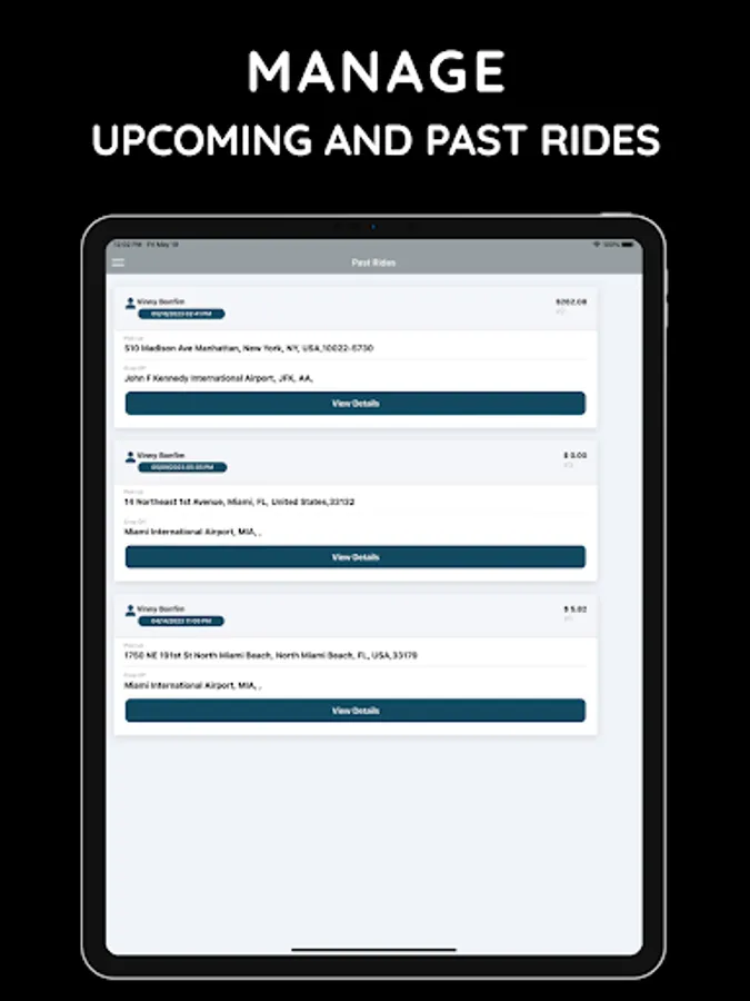 Receive text and email message updates with the driver’s contact information and arrival status.