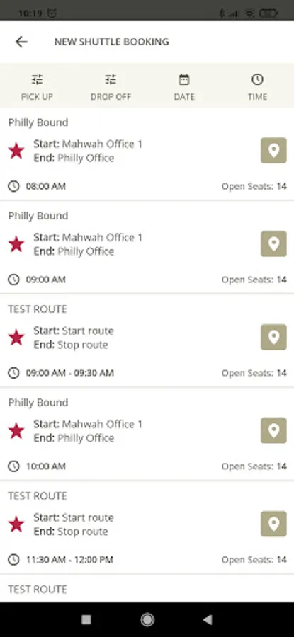 Contact your company's Ground Transportation group to get details on how to use this app to book reservations, see routes, review schedule, and track shuttles between office locations and for use with Special events.