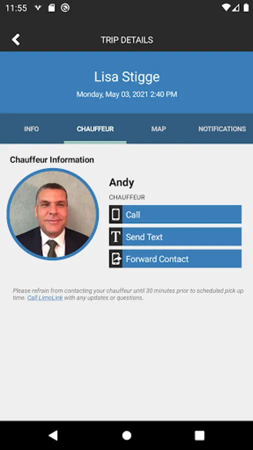 Access your reservation details virtually anywhere your day takes you with the LimoLink mobile app. Quickly view information about upcoming trips or past reservations. Driver contact information and on-site messages are only a tap away. The LimoLink Voyager app will give you the necessary tools to feel confident about your trips – download today for a peace of mind.
