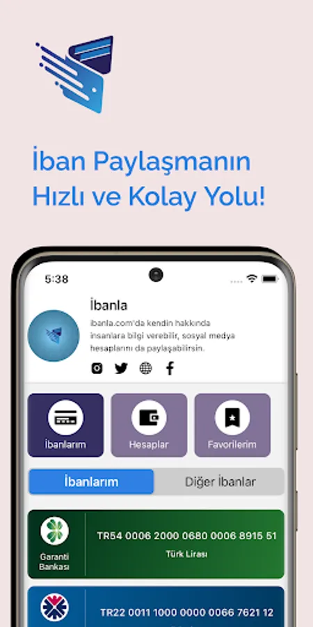 In short, ibanla reinterprets the problem of sharing iban, which we often need, and produces solutions on how we can do it in the easiest way. In addition, you can add prepaid cards such as Papara, Param etc. to your profile with iban and easily share them.