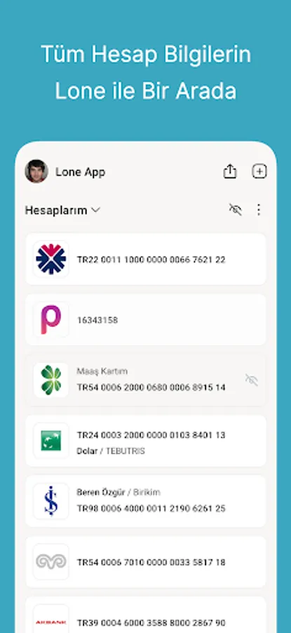 New generation finance assistant Lone! You no longer have to spend the effort of sharing account information or finding account information of others. You no longer need dozens of cards that you carry in your wallet every day to earn discounts or points in markets and stores. Because Lone is always with you!