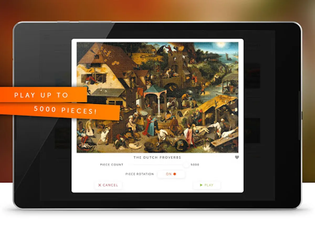 • Play jigsaw puzzles from 25 pieces to striking 5000 pieces!