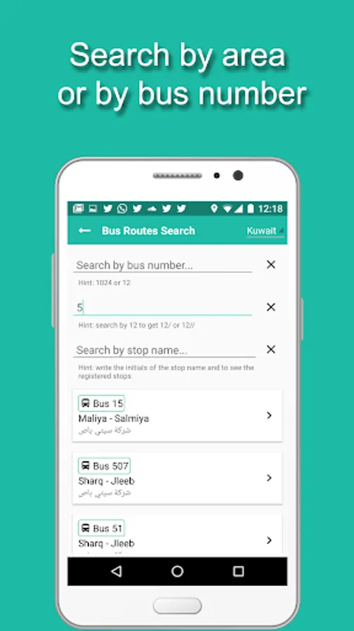 Passengers can search by the bus number to view its route, or can search by area name to view all buses pas by that area, and their routes.