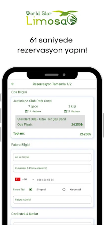 The advantage of paying at the facility with the possibility of free reservation… With the mobile application of worldstarlimosa.com, you can make your reservation for the facility you have chosen instantly, and make your payment at the facility at the beginning of your stay.