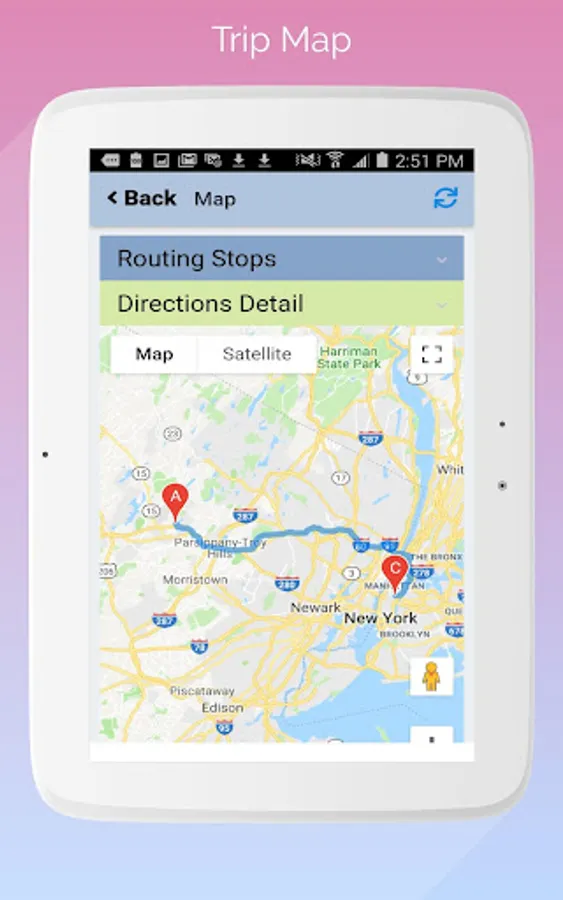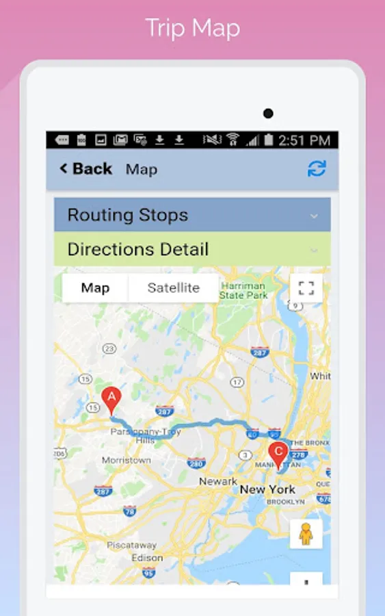 Open default map app on device by clicking the GPS icon a certain routing line.