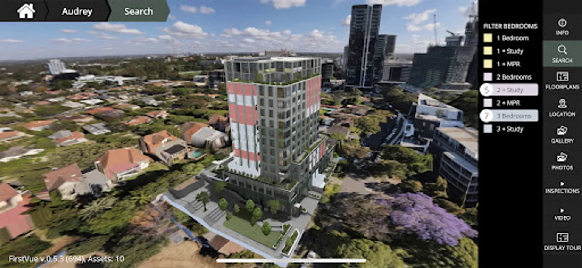 This app is powered by FirstVue™, a realtime 3D visualisation platform that helps showcase new developments in a more effective and intuitive way.
