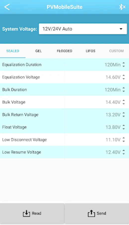 PVMobileSuite can connect you to the LMT-D series solar charge controller via Bluetooth Low Energy technology.