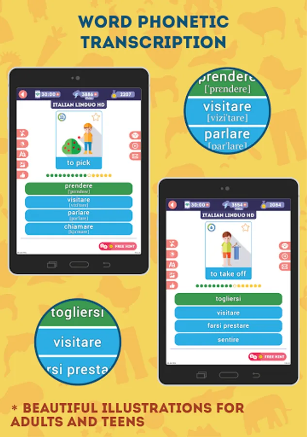 Only useful Italian words Italian for beginners LinDuo HD is a free and quick start to learn Italian language! Unlike others, we have only the most useful words, which are divided into 180 topic based lessons. Quality is here!