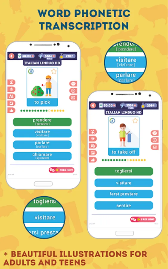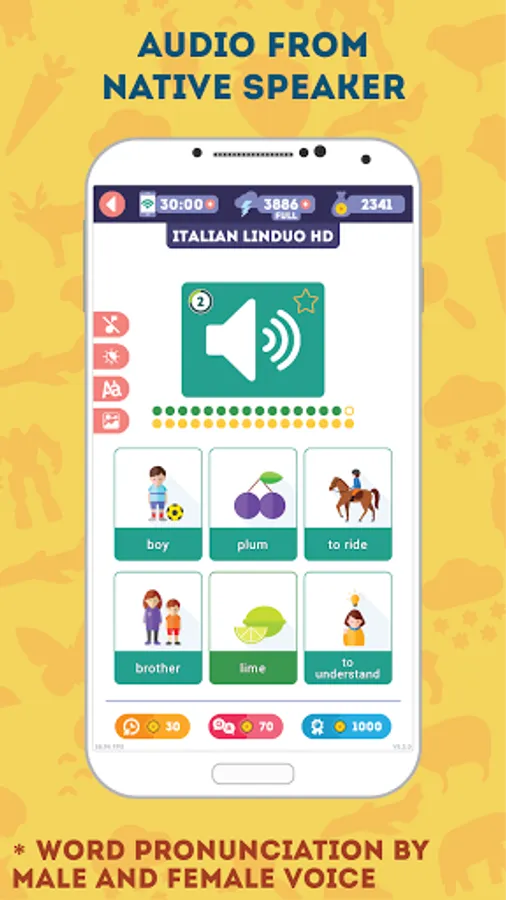 Word pronunciation by native speakers Our app will help you master pronunciation of Italian words! Each word is recording by professional native speaker! Additionally, in the settings you can choose between male or female voice.