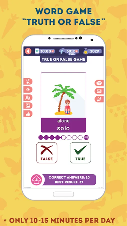 Review Past Material Many good apps do not pay enough attention to review past material! For this purpose we created word game "True or False". It is very simple, but addictive, and the most importantly, it helps to repeat past material and never forget it!