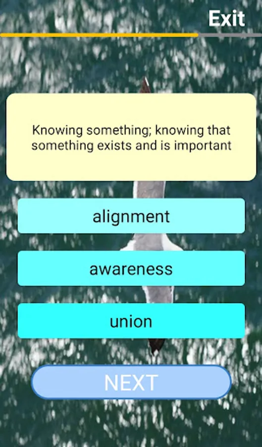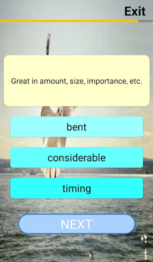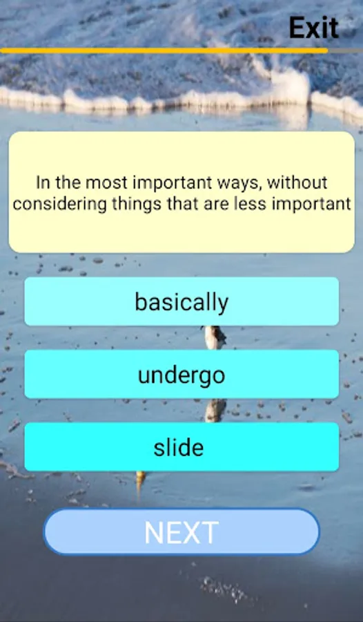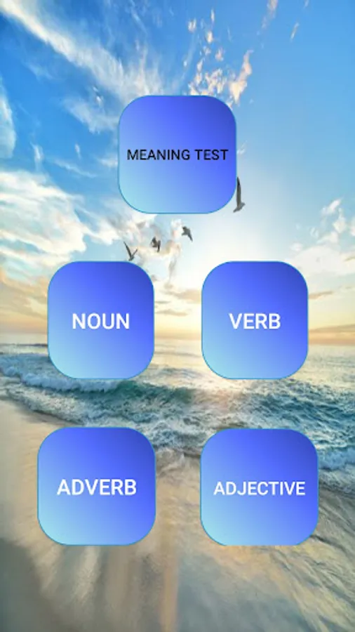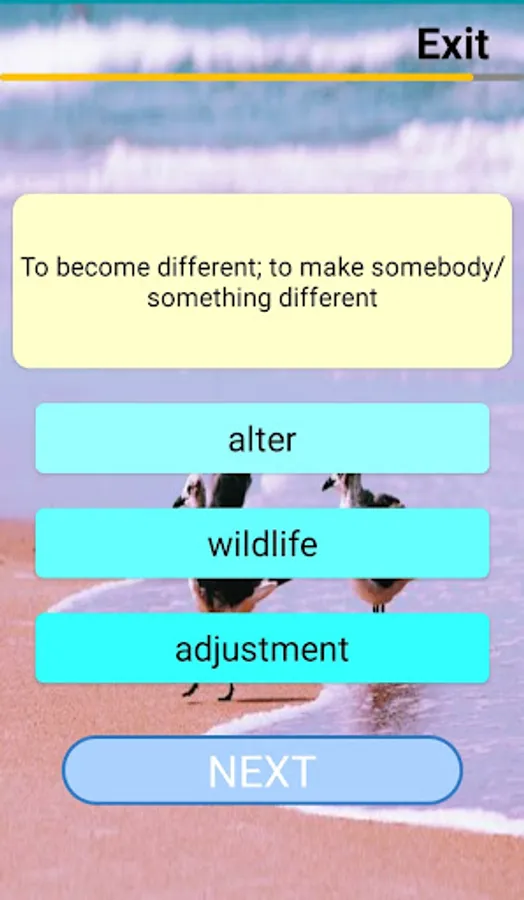 Meaning test app gives you an opportunity to test your understanding of the words of this level. It is very simple, it gives you the meaning of the word and you are required to choose the right word.