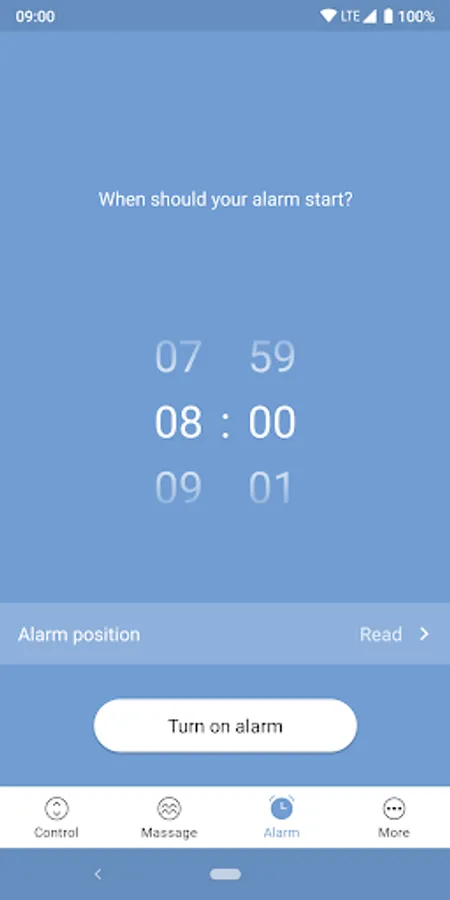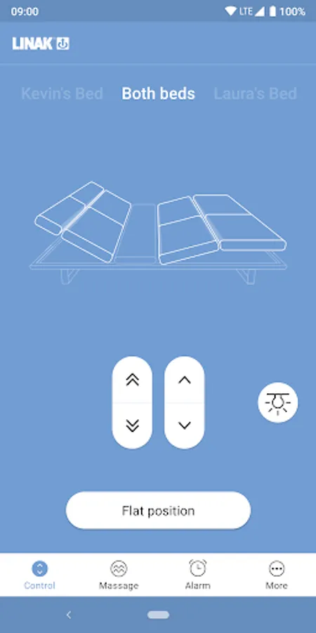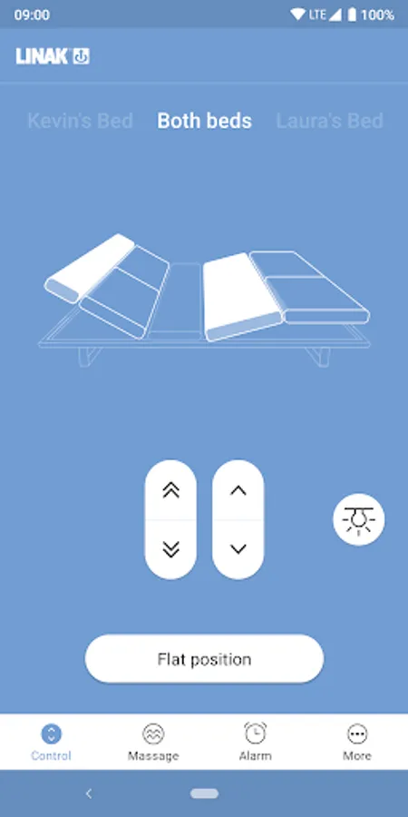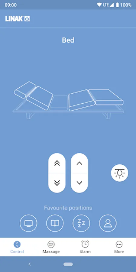 Use the LINAK Bed Control™ App to control up to four adjustment options (back, leg, neck and foot), and set the silent alarm to gently wake you up in the morning – with massage or slow movement to a favourite position.