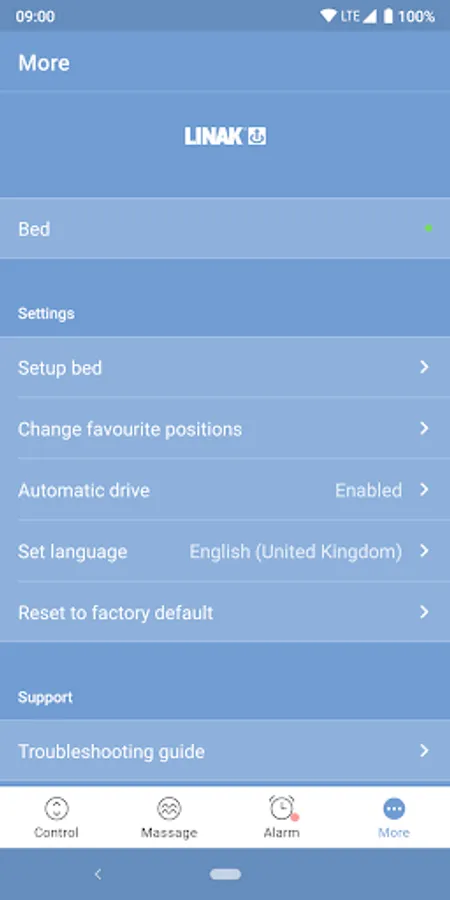 Use your mobile device as a hand control to adjust your LINAK®-powered comfort bed. This app works with all LINAK TWINDRIVE® dual actuator systems as well as with the LINAK Bluetooth® adapter. The app works via Bluetooth® Low Energy.