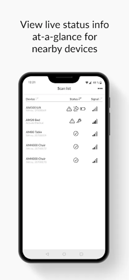 OneConnect by LINAK® is a powerful app designed to help you better view the status and run diagnostics on all products with built-in LINAK® Bluetooth® systems. The app continuously scans your surroundings for these devices and presents the system status of each product within range.