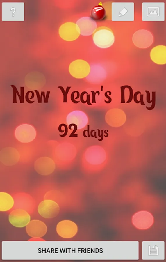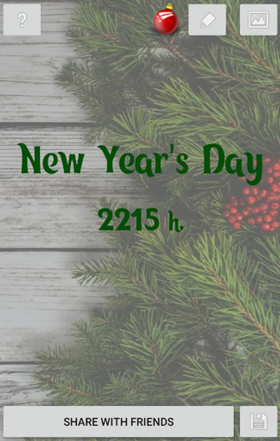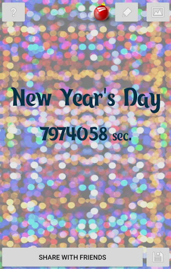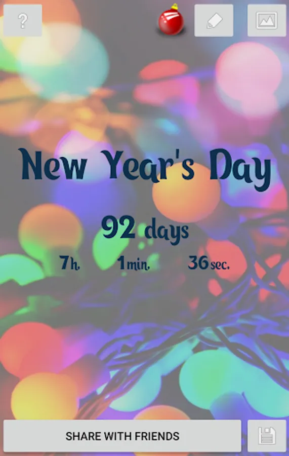 New Year is coming. Find out how many days, hours, minutes and seconds are left before the New Year. The countdown timer works in 5 modes - in days, hours, minutes, seconds or full mode. 10 different backgrounds are available. Share it with your friends on social networks or keep a beautiful value for memory.