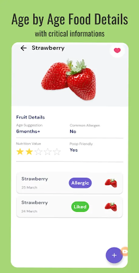 More than 150+ predefined foods are ready for weaning tracking. You can add foods to favourites and filter your favourites later. You can also log everything your baby eats, so you can see which foods your baby likes, which ones he doesn't like, and which ones he's allergic to. It can be used with both BLW (baby led weaning) and spoon-feeding. 📝 🍋 🍎 🍐
