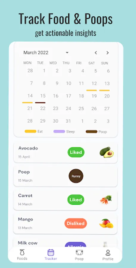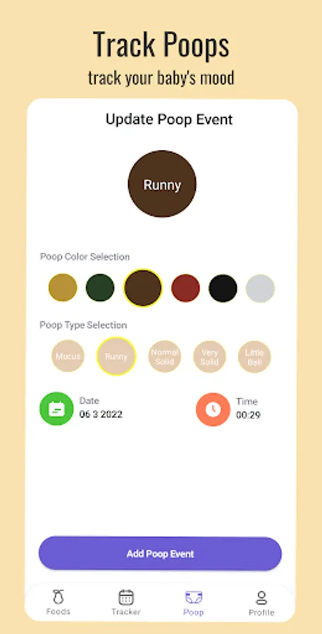 With Safely app, you can also track and noted the form of the poops which always help parents to get insights about the introduced solids. Color and types of the poop can be noted as well. 📆
