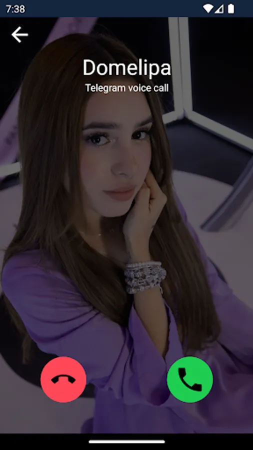 Esta aplicación proporciona videollamadas con Domelipa. Puedes probar las llamadas falsas de Domelipa y bromear con tus amigos. Puede elegir varios tipos de plantillas de llamadas que se han proporcionado.