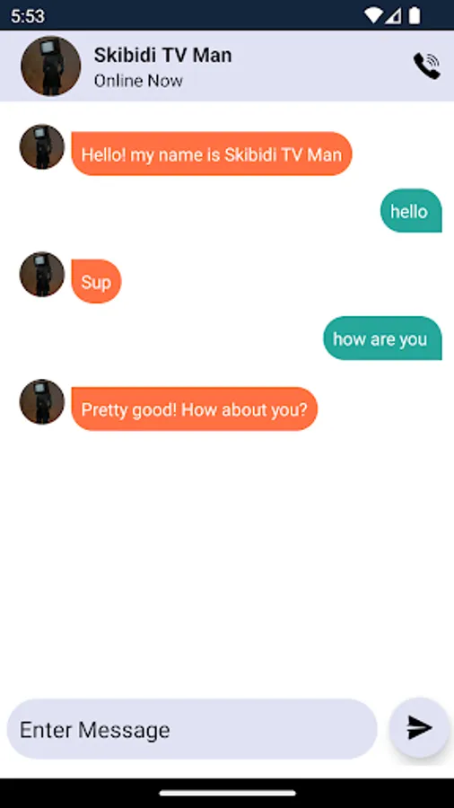 Disclaimer: This app is purely fictional and not official, just made for fun, it's just for entertainment! In other words, this is not a Skibidi TV Man who calls, but a simulation of fake calls and fiction.