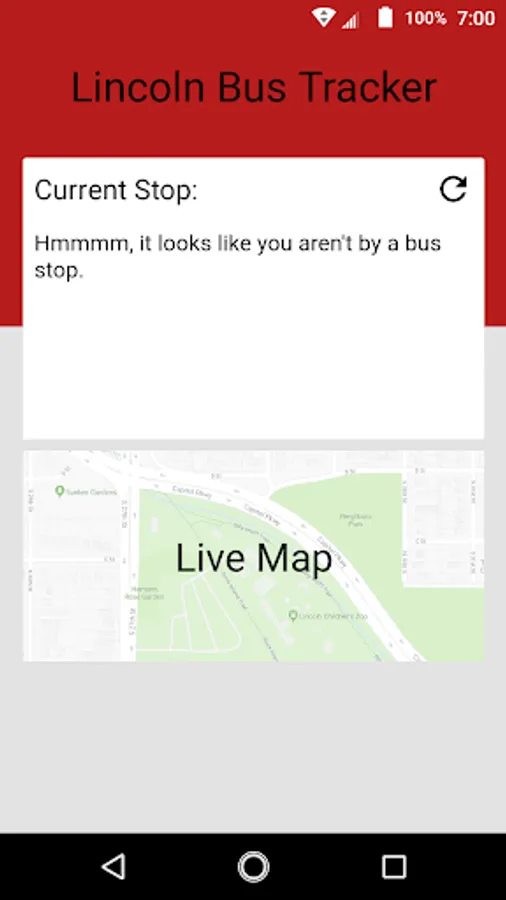 Welcome to the Lincoln Bus Tracker App! With this app, you can view information about a bus stop you are waiting at, view busses on a live map and view major stops on a live map.