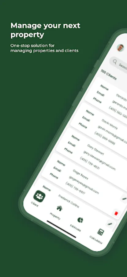 Keep a dedicated list of clients all in one place so your personal contacts don't get in the way, and pull their details any time to run estimates & Calculations.Bring up and manage your properties and never be without your portfolio