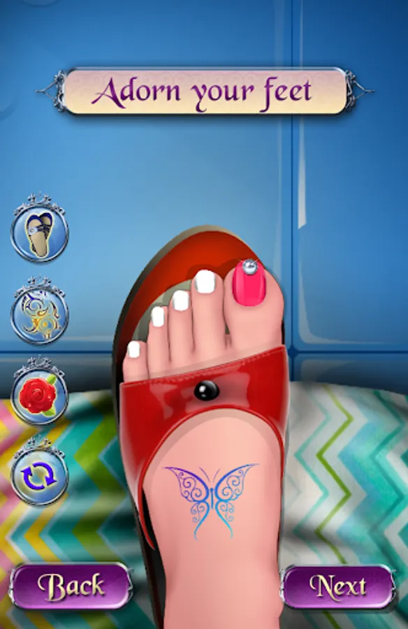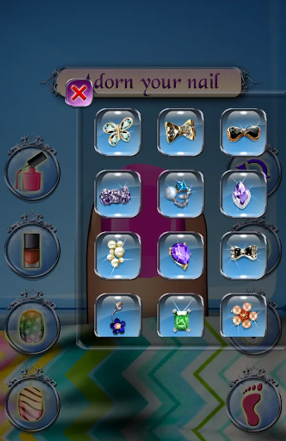An amazing game with a stunning collection of beautiful decorations and patterns for your toenails !