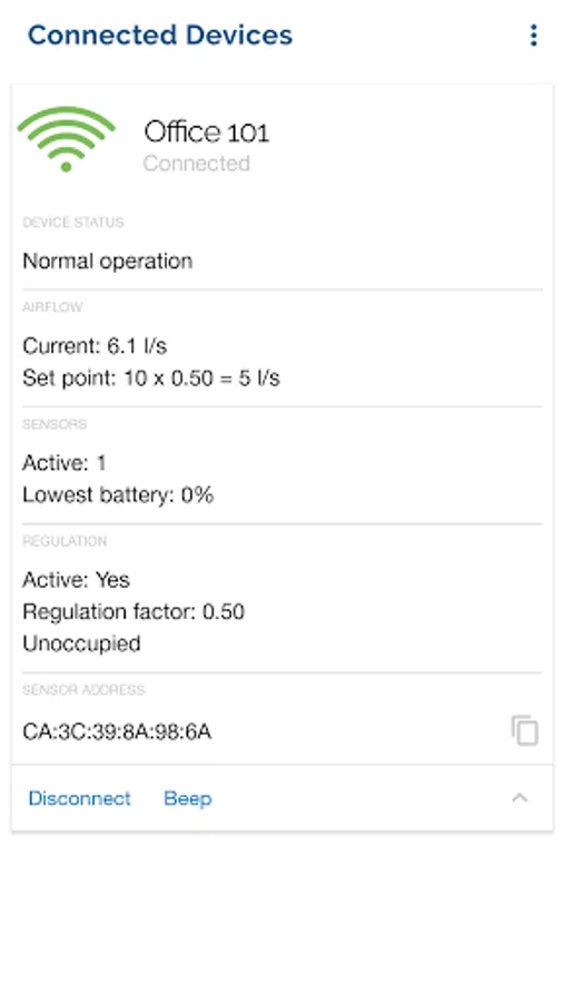 The app connects via Bluetooth to the product installed in ventilation ducts. Since the product is usually mounted in or near the ceiling, with the OneLink app an installer can remotely change the settings from a distance, standing on the floor.
