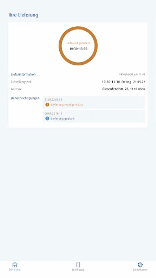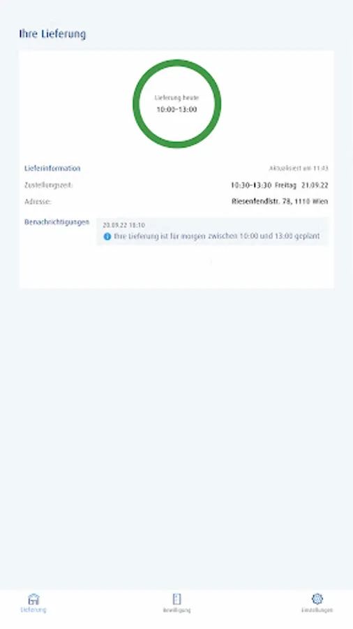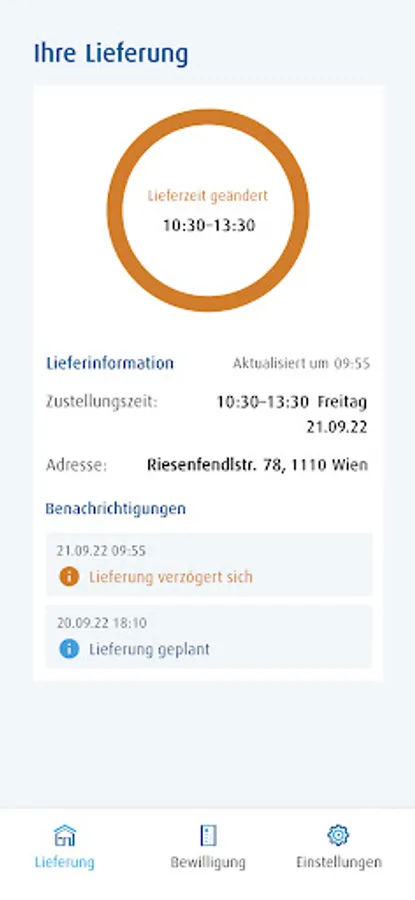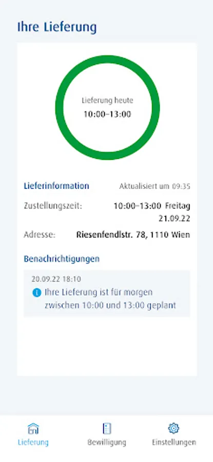 As soon as the route planning is completed the day before your oxygen delivery, we will notify you via a push message directly to your smartphone. From this point on, you can view your three-hour delivery time window in the MOXI® app.