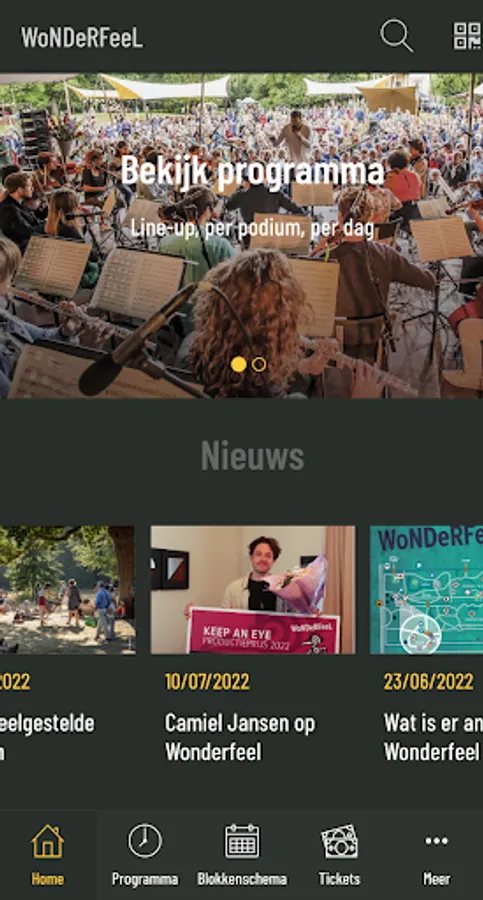Wonderfeel is a three-day outdoor festival for classical music with the casual atmosphere of a pop festival. On the 25-hectare nature reserve in 's-Graveland, the seven Wonderfeel stages are spread a mini walk apart. They offer something for everyone: from Mozart to Aart Strootman, from Rameau to Pärt with lines to jazz, world and pop music. There are world class musicians: young dogs and old hands. Further on the program: dance, poetry, music docs, nature walks, yoga and various children's activities. The audience listens relaxed on benches, in bean bags under the trees or on a rug in the grass. There are rolling kitchens with pizza and beer, bouillabaisse and champagne and everything in between. Wonderfeel offers a total experience of classical music for a wide audience of today on the green festival grounds.