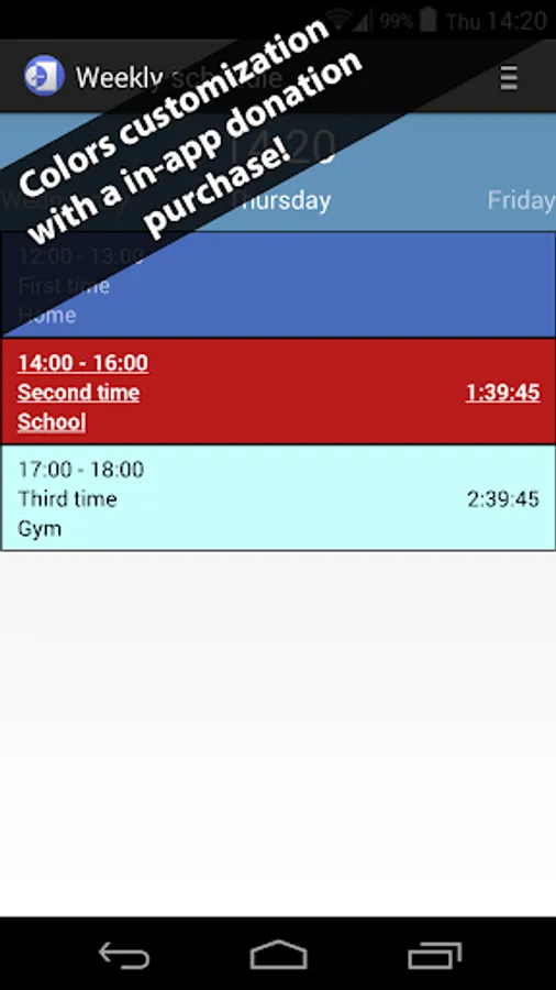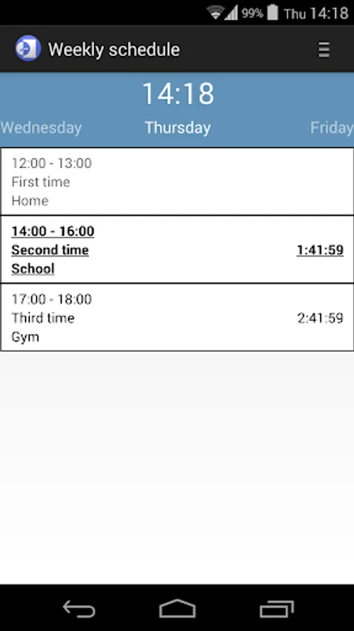 Not enough time to open the app? Just use the widget that show the nearest thing in hours and minutes.