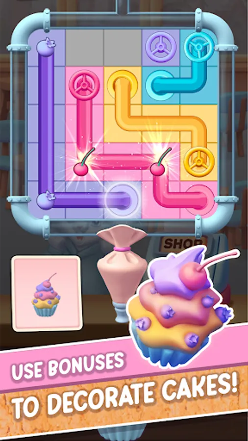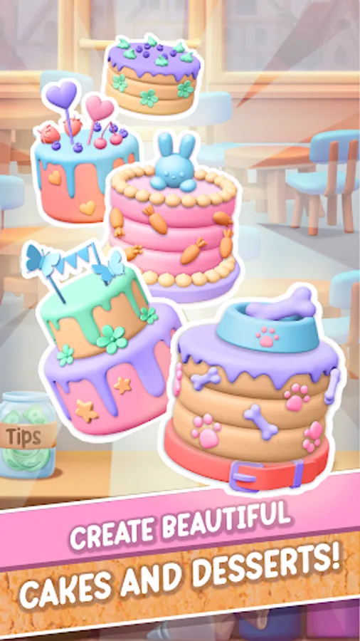 Relax after a stressful day! Cake Bakery Puzzle game is a perfect eye and brain training and puzzle-solving game for adults. The game includes many levels, and the difficulty increases progressively. Help the puppy prepare the most delicious cake! Develop your cafe, upgrade furniture, environment. Conquer the whole world, turn one cafe into a profitable network!