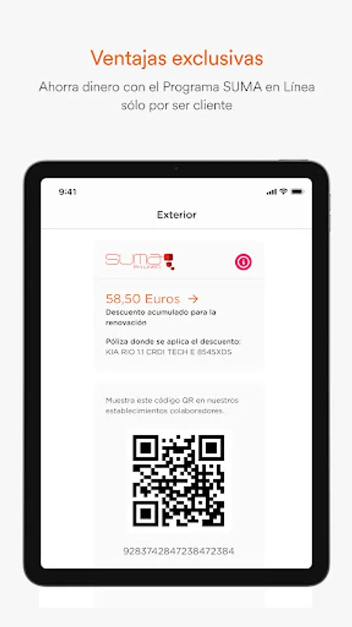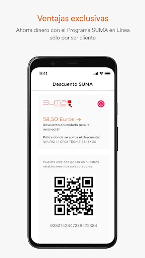 - “Suma en Línea” card in digital format. To add advantages at participating establishments and save.