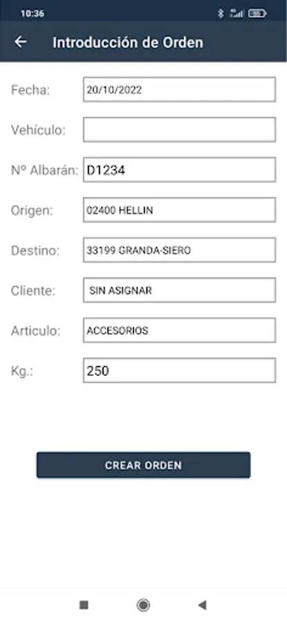 Application of the national and international road freight transport company to manage cargo orders from TRANSPORTES MUNARRIZ drivers